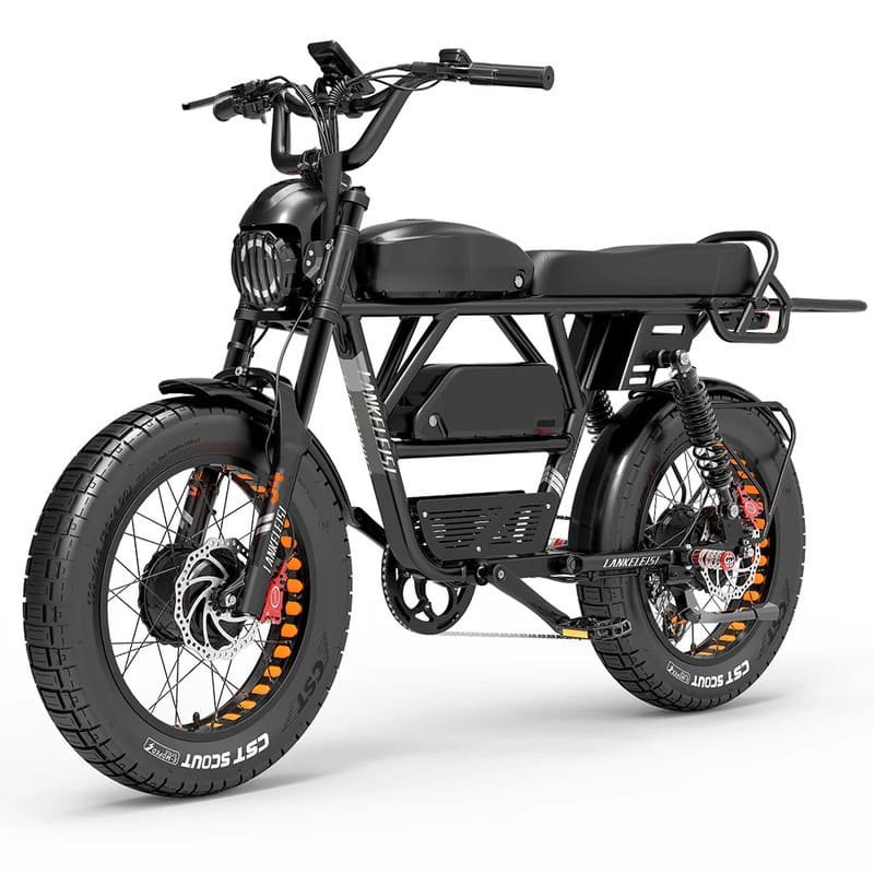 Lankeleisi X-Black Knight se compose d’une suspension de fourche avant et d’une suspension arrière de 2 x 320 lb, ce qui réduit efficacement les bosses et les bosses rencontrées sur les routes accidentées, réduisant ainsi l’inconfort physique du cycliste et offrant une conduite plus douce et plus confortable.