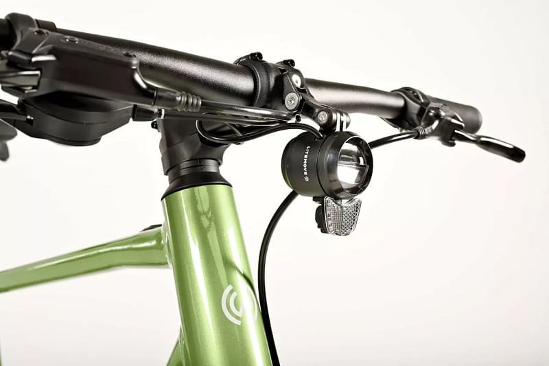 Nos vélos électriques de trekking et de ville sont équipés conformément au StVZO. Ils disposent d’un feu arrière bien visible et d’un feu avant lumineux, avec lesquels vous pouvez voyager sans soucis même sur des chemins non éclairés. Ils sont également fournis avec tous les réflecteurs nécessaires et bien sûr une cloche.